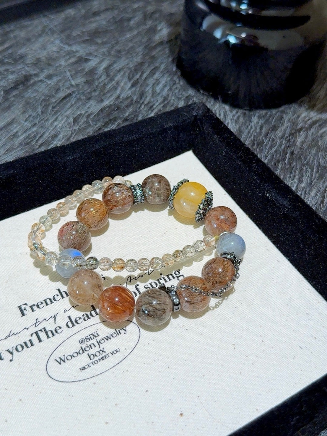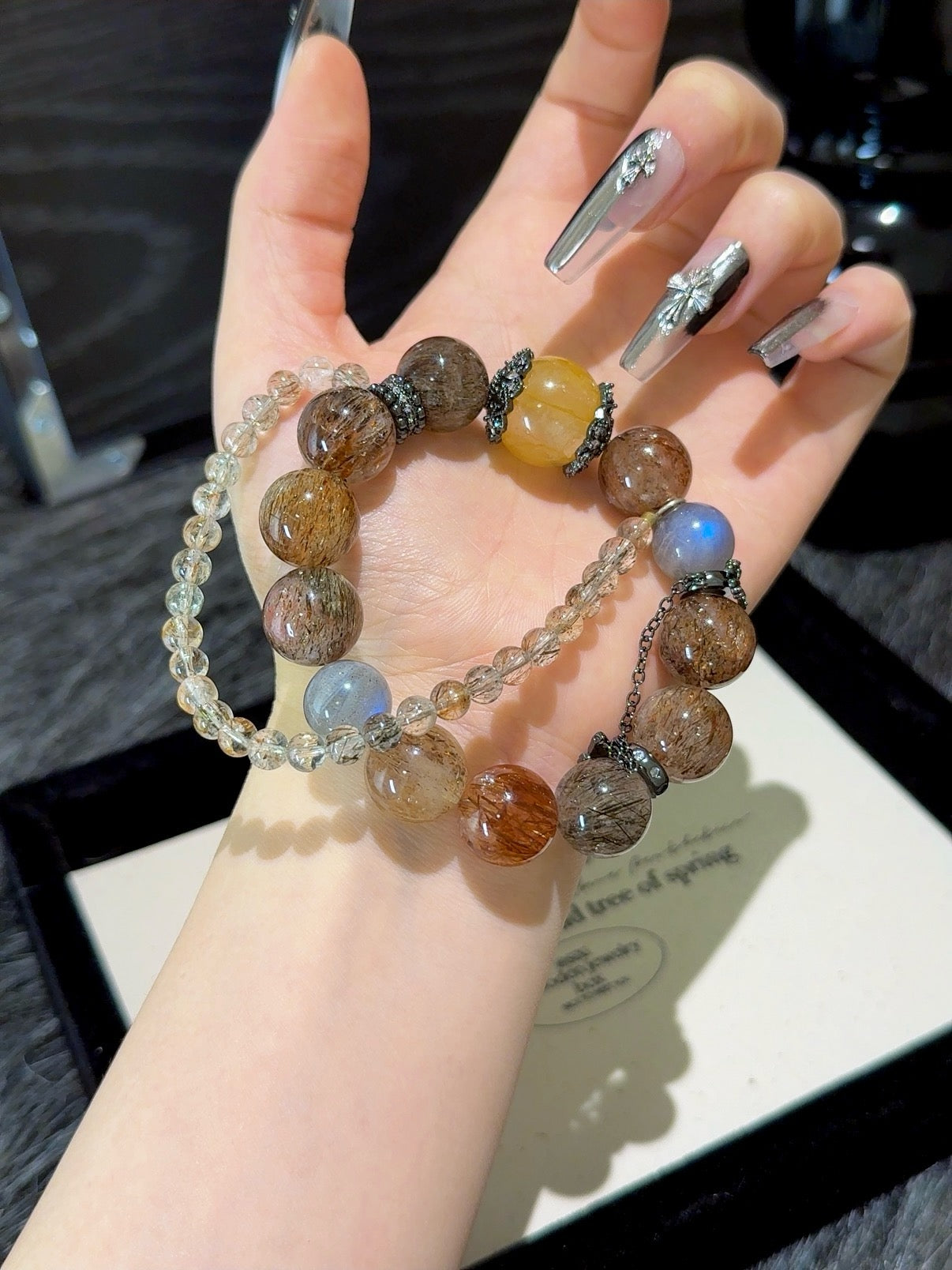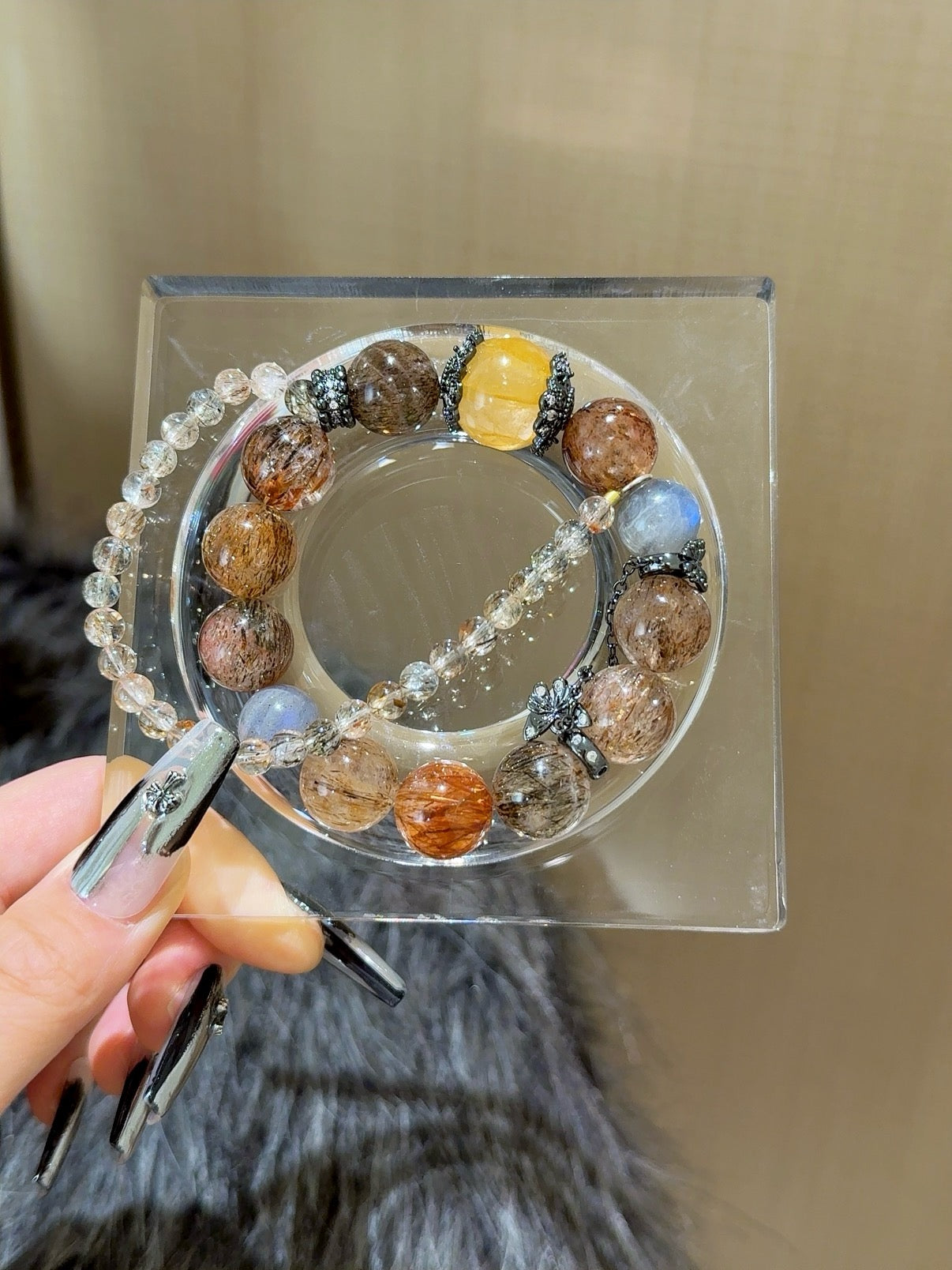 • Materials: Black Gold Super Crystal, Yellow Glue Flower Crystal, Grey Moonstone