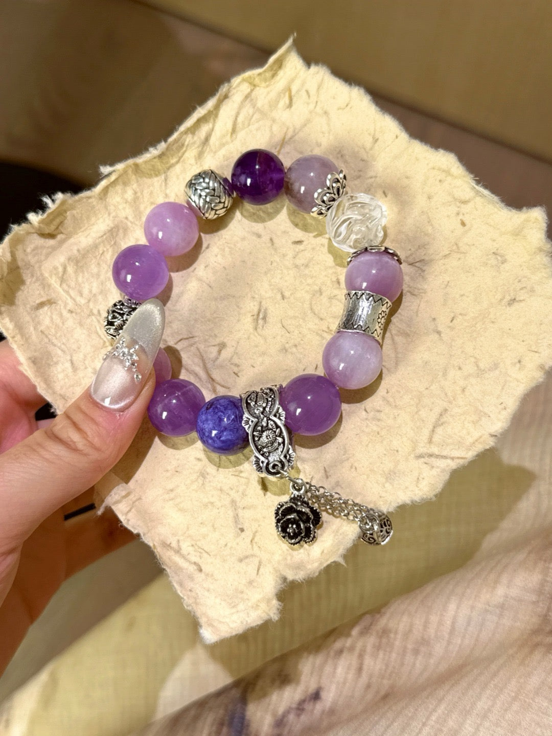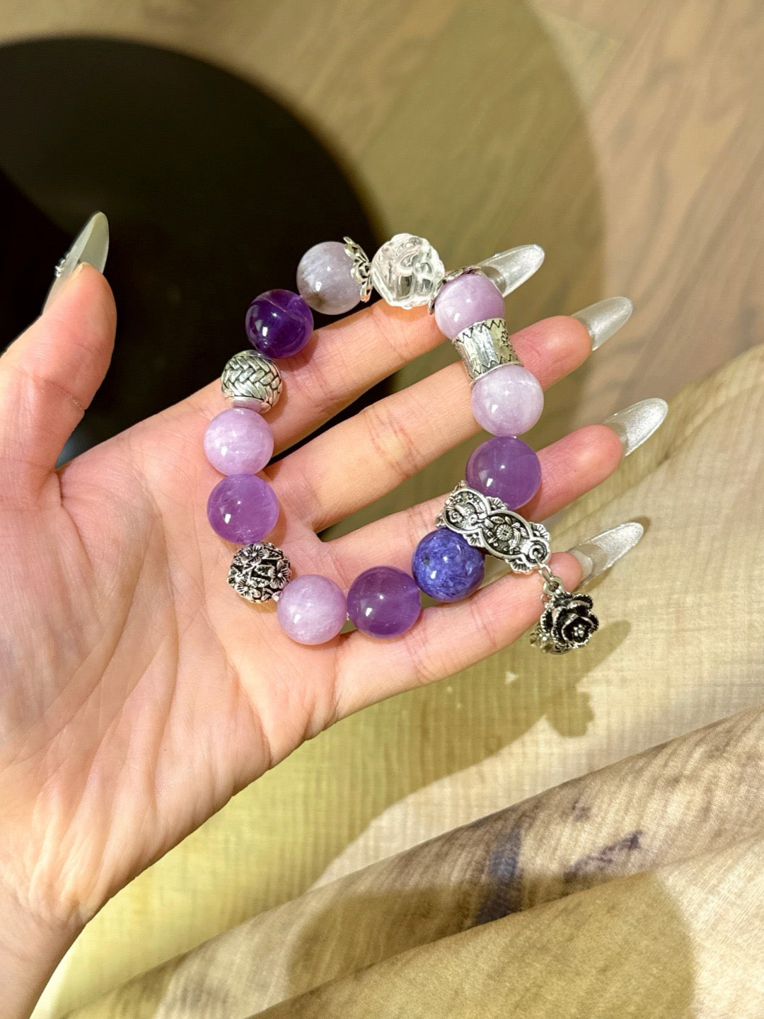 Materials: Amethyst, Kunzite, Purple Rabbit Hair Crystal, Charoite, White Crystal Fox